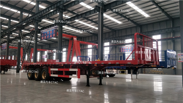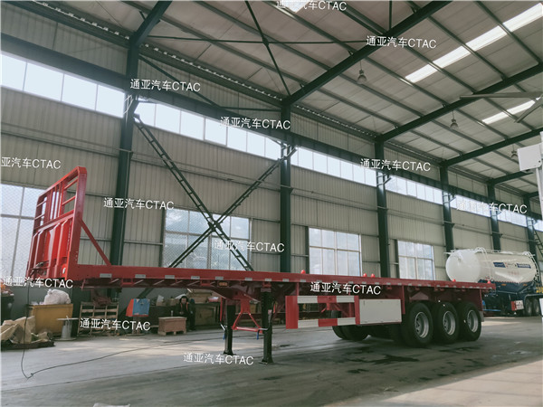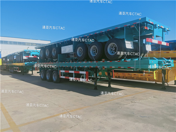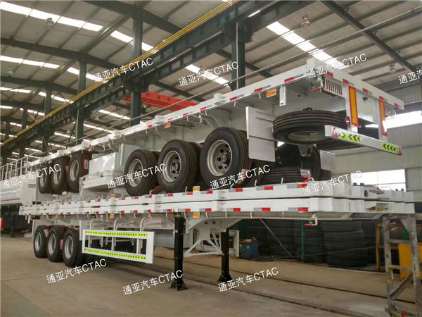 集装箱平板半挂车可运输集装箱以及散货等,一车多用深受客户喜爱。