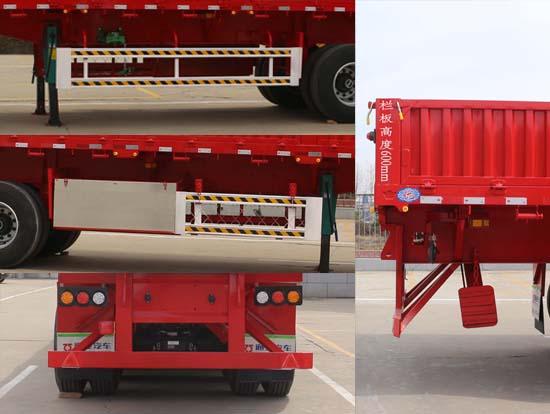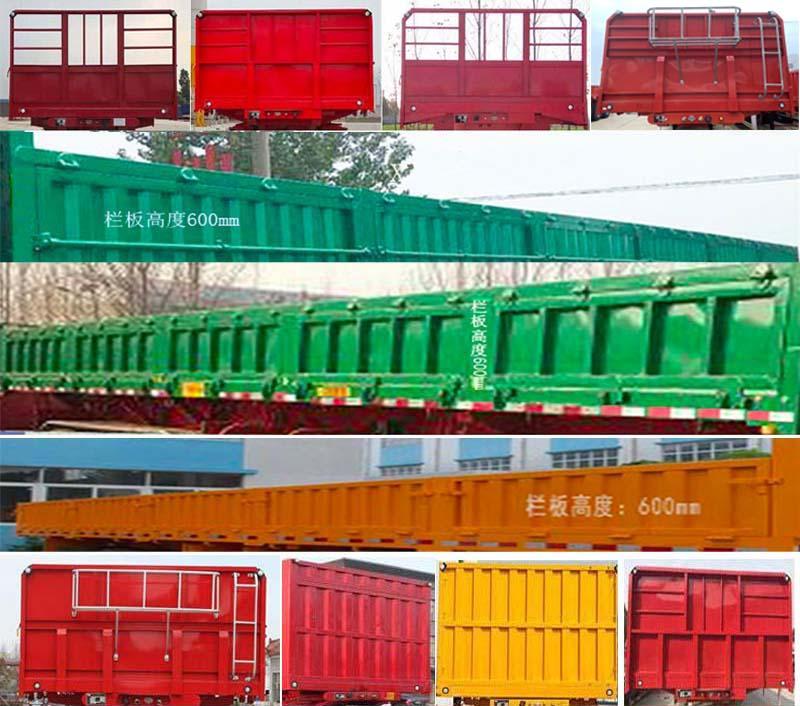 | 备注 | 卸货方式为:侧卸;安装有手动锁紧机构;选装前挡样式,选装侧面样式,选后组合灯为矩形样式,选装后雾灯圆形样式,选装尾部标志板安装位置,每侧可选4扇门,5扇门,6扇门,选装栏板结构为下开门,吊开门结构,横瓦楞,竖瓦楞,方管十字花样式,选装前档板结构,选装侧面样式,选装后部样式,立柱可选内插,外插样式;ABS系统生产厂家:广州瑞立科密汽车电子股份有限公司,梁山顺安达汽车科技有限公司,广州市西合汽车电子装备有限公司,型号:CM2XL-4S/2M,SAD-ABS4S/2M,XH-GQ4S2M-E01;侧面及后下部防护装置所用材料材质为:Q235,侧面及后下部防护装置与车辆连接方式均为焊接,后部防护装置的主要尺寸参数:断面尺寸(mm)为140×50,离地高度为:480mm;车长/牵引销到车辆最前端距离/轴距/后悬对应关系为:13000/1200/6880+1310+1310/2300,13000/1300/6780+1310+1310/2300,13000/1400/6680+1310+1310/2300,12500/1300/6480+1310+1310/2100,12000/1200/6380+1310+1310/1800. | ||
