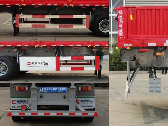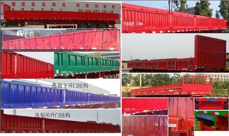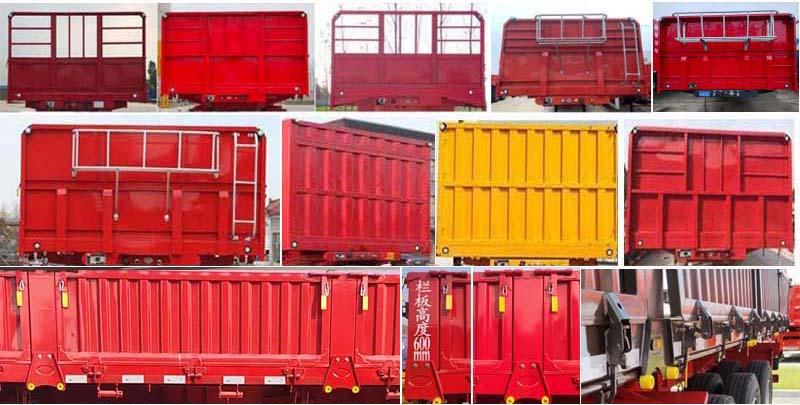 | 其它 | 卸货方式为:侧卸;安装有手动锁紧机构;选装前挡样式,选装侧面样式(五开门或六开门)及栏板样式(竖瓦楞),选装后尾样式,选装栏板结构为下开门,吊开门结构,选装包角样式及合页样式;ABS系统生产厂家:广州瑞立科密汽车电子股份有限公司,梁山顺安达汽车科技有限公司,广州市西合汽车电子装备有限公司,山东梁山德尔福汽车科技有限公司,型号:CM2XL-4S/2M,SAD-ABS4S/2M,XH-GQ4S2M-E01,DEF-ABS4S/3M;侧面及后下部防护装置所用材料材质为:Q235B,侧面防护装置与车辆连接方式为螺栓连接,后下部防护装置与车辆连接方式为焊接,后部防护装置的主要尺寸参数:断面尺寸(mm)为140×50,离地高度为:440mm; | ||