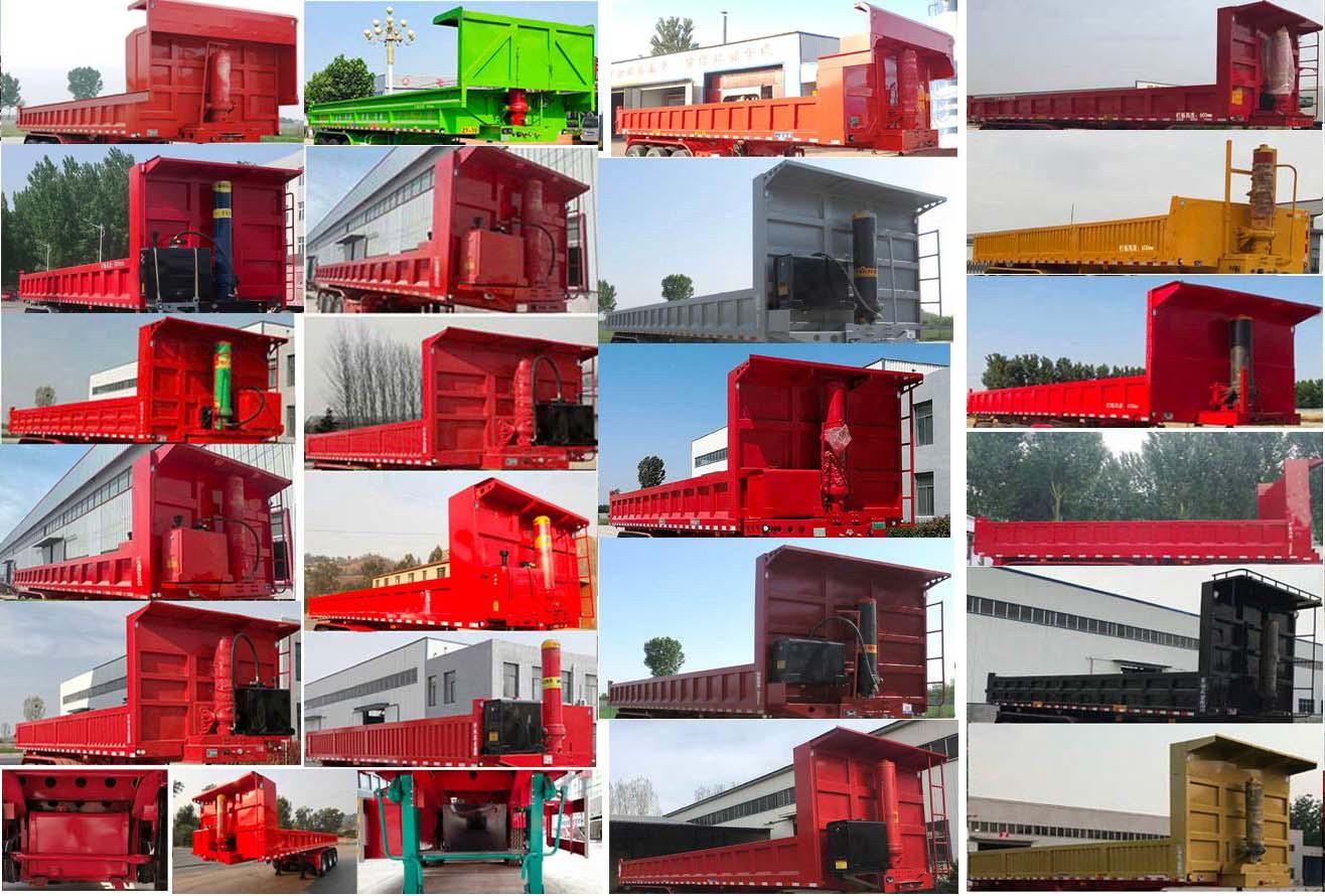 其它卸货方式为:后卸;安装有手动锁紧机构;选装后部灯具样式,选装后翻转支架,选装后部栏板样式,选装前档样式,选装侧面样式,选装号牌板样式,选装液压油箱安装位置,选装尾部标志板安装位置,选装大梁后部挡板为钻孔样式;ABS系统生产厂家:广州瑞立科密汽车电子股份有限公司,广州市西合汽车电子装备有限公司,山东梁山德尔福汽车科技有限公司,型号:CM2XL-4S/2M,XH-GQ4S2M-E01,DEF-ABS 4S/3M;侧面及后下部防护装置所用材料材质为:Q235B,侧面防护装置与车辆连接方式为螺栓连接,后下部防护装置与车辆连接方式为焊接,后部防护装置的主要尺寸参数:断面尺寸(mm)为140×50,离地高度为:490mm;车长/牵引销到车辆最前端距离/轴距/后悬对应关系为:9500/1000/4540+1310+1310/1340,9000/900/4290+1310+1310/1190,8700/850/4150+1310+1310/1080.