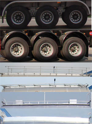 | 备注 | 罐体总容量:40立方米,罐体有效容积:39立方米,运输介质:粉煤灰、无烟煤粉、轻质水泥,密度:875千克/立方米,罐体尺寸(含封头)长:9160mm,最大截面宽度:2500mm,最大截面高度3200mm,前后封头直径:2050mm;选装车辆前部不加装机组,不带机组时外形尺寸(mm)为:9950*2550*4000.当车长为:10700时,轴距为:5950+1310+1310,5830+1310+1310,后悬为:800;当车长为:9950时,轴距为:5950+1310+1310,5830+1310+1310,后悬为:800;选装爬梯的安装可以是罐体两侧或罐体后部,爬梯个数可以为一个或两个,选装轮罩样式及铝合金轮毂,选装罐顶升降护栏,顶部可为挡水槽式也可为走台式,选装后部部件结构,工具箱位置可选装,选装罐盖个数及位置,选装尾部标志板样式;ABS系统生产厂家:广州瑞立科密汽车电子股份有限公司,梁山顺安达汽车科技有限公司,山东梁山德尔福汽车科技有限公司,ABS型号:CM2XL-4S/2K(4S/2M),SAD-ABS4S/2M,DEF-ABS4S/3M;侧面及后下部防护装置所有材料材质:Q235,侧后防护与车架连接方式均为:螺栓连接;后部防护装置的主要尺寸参数:断面尺寸(mm):120×58,离地高度:500mm.罐体顶部封闭不可开槽,后部不可开启. | ||
