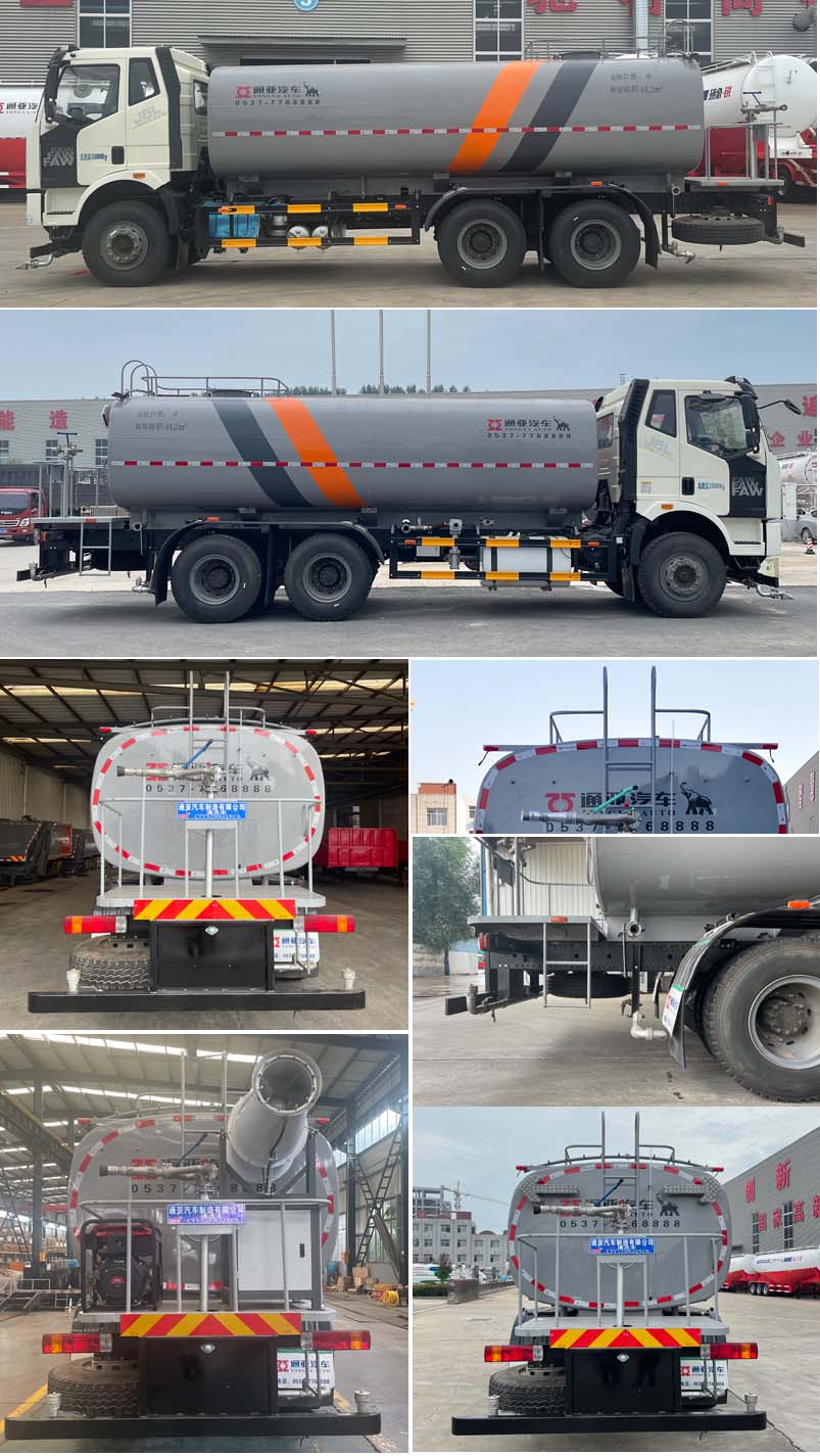 | 其它 | 加装罐体及清洗装置,用于清理路面或管道沉积物或清洗机械表面;仅采用轴距为:4350+1350mm,选装前高压冲洗装置时,前伸为920mm,整备质量为:11370kg,罐体有效容积为13.4立方米,罐体尺寸(长×长轴×短轴)(mm):5800×2290×1590;整备质量为:10585kg时,罐体有效容积为14.2立方米,罐体尺寸(长×长轴×短轴)(mm):6000×2290×1550;选装后部加装圆形指示灯或箭头指示灯,选装两种指示灯安装一种或两种同时安装,选装加装后上部喷雾杆,选装后部加装喷雾机装置,侧后防护装置材料均为:Q235B,侧防护装置与车架连接方式为螺栓连接;后防护装置与车架连接方式为焊接,后防护装置截面尺寸为:120×68mm,离地高度480mm;ABS生产厂家:1.长春瑞立科密汽车电子有限公司,型号:CM4XL.ABS生产厂家:2.威伯科汽车控制系统(中国)有限公司,型号:ABS-E.装备限速装置,限速89km/h. | ||