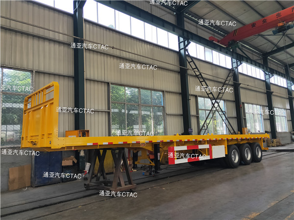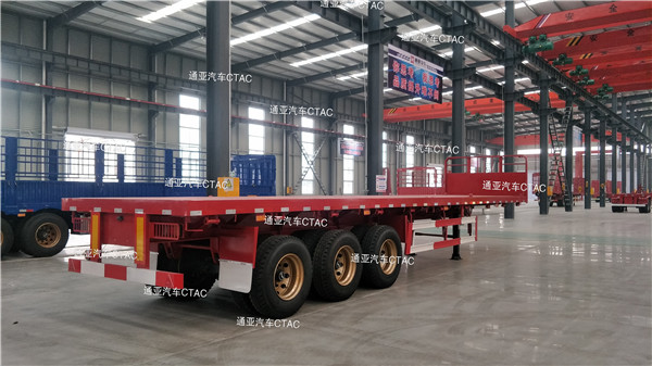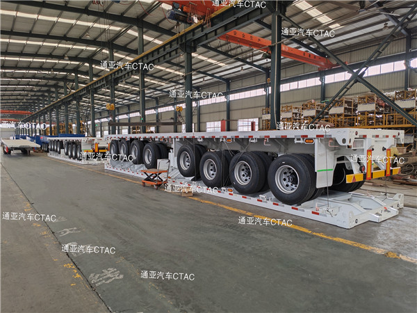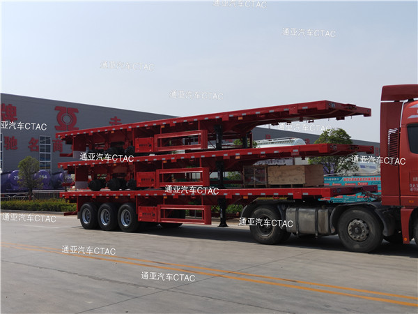 集装箱平板半挂车可运输集装箱以及散货等,一车多用深受客户喜爱。