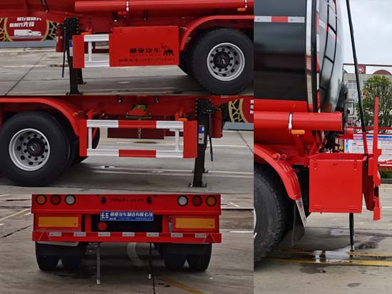 | 该车为非危化品运输车辆,罐体总容量:38.5立方米,罐体有效容积:37立方米;允许运输介质的最大密度为:850千克/立方米,保温层内部罐体外形尺寸为:长9700mm,宽2350mm,罐体为鹅颈式,前端高度:1950mm,后端高度:2150mm,保温层厚度为50mm时,罐体(含保温层)外形尺寸为:长9800mm,宽2450mm,罐体为鹅颈式,前端高度:2050mm,后端高度:2250mm,选装保温层厚度为80mm时,罐体(含保温层)外形尺寸为:长9860mm,宽2510mm,罐体为鹅颈式,前端高度:2110mm,后端高度:2310mm;选装保温层厚度为100mm时,罐体(含保温层)外形尺寸为:长9900mm,宽2550mm,罐体为鹅颈式,前端高度:2150mm,后端高度:2350mm;盘式制动/空气悬架时加装EBS,EBS系统生产厂家:广州瑞立科密汽车电子股份有限公司;EBS型号:CM-TEBS;选装鼓式制动/钢板弹簧悬架时加装ABS,ABS系统生产厂家:广州瑞立科密汽车电子股份有限公司,广州市西合汽车电子装备有限公司,山东梁山德尔福汽车科技有限公司,ABS型号:CM2XL-4S/2M,XH-GQ4S2M-E01,DEF-ABS4S/3M;侧面及后下部防护装置所用材料材质均为:Q235,侧面及后下部防护装置与车辆连接方式均为:螺栓连接,后部防护装置的主要尺寸参数:断面尺寸(mm)为120×68,离地高度为:500mm.悬架型式为非独立空气悬架或非独立钢板弹簧悬架;选装加热炉装置,选装尾部阀门,选装丝杠阀,选装无加热炉装置. | |||