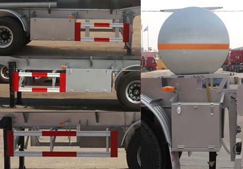 | 备注 | 采用适用于牵引危险品运输半挂车的牵引车.危险货物运输车辆类型:AT,准运介质的最大密度:900千克/立方米;罐体有效容积:36立方米,罐体外形尺寸为:长10500mm,最小直径为:2100mm,最大直径2280mm,选择轮罩样式及铝合金轮毂,选择罐顶升降护栏,顶部可为挡水槽式也可为走台式,选装爬梯的安装个数(1个或2个)和位置(罐体前部或后部),选装后部结构,工具箱可以在罐体左侧,右侧或两侧都有或都无,选装阀门箱位置及个数,选装轻型行走机构时整备质量为8800Kg,选装后部灯具型号,选装后部尾部标志板可以为两块安装;ABS系统生产厂家:广州瑞立科密汽车电子股份有限公司,梁山顺安达汽车科技有限公司,ABS型号:CM2XL-4S/2M,SAD-ABS4S/2M;侧面及后下部防护装置所用材料材质均为:Q235,侧面及后下部防护装置与车辆连接方式均为:螺栓连接或焊接,后部防护装置的主要尺寸参数:断面尺寸(mm)为120×68,离地高度为:500mm | ||