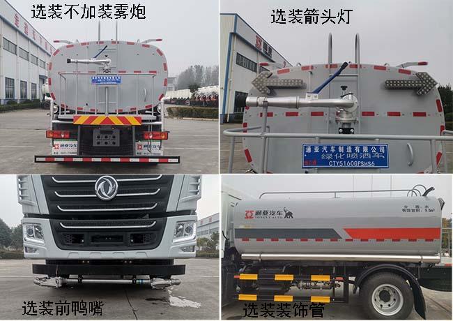 | 其它 | 装备有罐体和喷洒系统,用于园林绿化喷洒作业.介质:水,罐体总容量:10立方米,罐体有效容积为9.5立方米,罐体尺寸(长×长轴×短轴)(mm):4100×2400×1450;仅采用3950mm轴距;选装装饰管,选装前鸭嘴,选装箭头灯,选装不加装雾炮;侧后防护装置材料均为:Q235B,侧后防护装置与车架连接方式均为螺栓连接,后防护装置截面尺寸为:120×68mm,后防护装置离地高度480mm,ABS型号为J ABS,生产厂家为焦作博瑞克控制技术有限公司. | ||