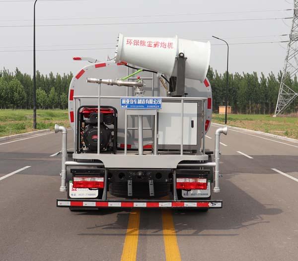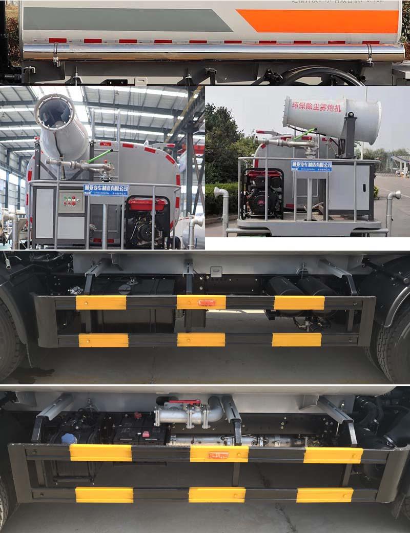 | 其它 | 专用装置为抑尘雾炮,用于城市抑尘;仅采用3800mm轴距;罐体有效容积为7.6立方米,罐体截面形状:罐体尺寸(长×长轴×短轴)(mm):4100×2000×1250;侧后防护装置材料均为:Q235B,侧后防护装置与车架连接方式均为螺栓连接,后防护装置截面尺寸为:120×60mm,离地高度410mm;ABS型号及生产厂家:ABS/ASR-24V-4S/4M/襄阳东风隆诚机械有限责任公司.随底盘选装尿素罐、储气筒、蓄电池等安装位置,选装喷雾机安装位置,选装侧面加装装饰管. | ||